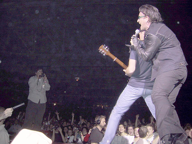 Ender: Obviously they all mean the same, as no one member, or two, or three, is U2. So I appreciate them all for that. However, to pick one who has inspired me most? Bono. Hands down. He's the voice I learned to sing with, the words I learned to write with. His lyrical imagery is beautiful in whatever era you want to pick. I admire him for his endless campaigning for debt relief, feeding the starved, helping the poor, etc. Sometimes I'm annoyed, and sometimes I sit there and think, do what you do best. But... here's a guy who has a ton of money and could blow it on anything he wants. Instead, he cares for a family, he has a loving wife, he uses his influence to bring socially important issues to the conscious minds of the populous. This is incredibly important to me. He's a role model for many reasons. For one, he's living proof that you can be the biggest rock star in the world and still have a loving, committed relationship with a wife, and a supportive family. That means a lot, because I want that, but I also realize that if I make it somewhere with my music, I'm going to be on the road a lot. He's living proof that it can work. He's also a stand-up guy, from what I hear. And I want to be that. I'm well aware that I can get a swollen head sometimes. It's role models like that that keep you level, keep you sane. He should be really proud. Someday if I get to meet him I just want to tell him thank you, even though I'm well aware of the fact he's probably heard it a million times.
