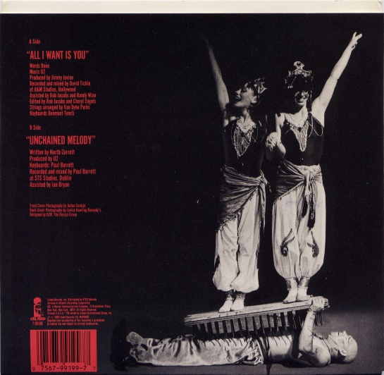 All I Want is You: Words by Bono. Music by U2. Produced by Jimmy Iovine. Recorded and mixed by David Trickle, A&M Studios, Hollywood. Assited by Rob Jacobs and Randy Wine. Edited by Rob Jacobs and Cheryl Engles. Strings arranged by Van Dyke Parks. Keyboards by Benmont Trench. Unchained Melody: Written by North / Zarrett. Produced by U2. Keyboards by Paul Barrett. Recorded and mixed by Paul Barrett, STS Studios, Dublin. Assisted by Ian Bryan. Everlasting Love: Written by Mac Gayden and Buzz Cason. Produced by U2. Piano by Paul Barrett. Engineered and mixed by Paul Barrett, STS Studios, Dublin. Assisted by Ian Bryan. Front Cover Photography: Colm Henry. Back Cover Photography by Lesley Howling/Barnaby's. Designed by DZN, The Design Group.
