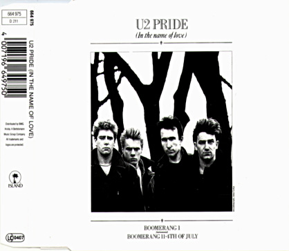 Pride (In the Name of Love) was the first single from U2's 1984 album The Unforgettable Fire. In the 1980s, Bono described "Pride" as "the most successful pop song we've ever written. Pop for me is an easily understood thing, you listen to it and you comprehend it almost immediately. You relate to it instinctively." He also added with great insight: "A lot of (The Unforgettable Fire) isn't like that at all." Legend has it that "Pride" was developed during a sound check in 1983. The song is a tribute to Dr. Martin Luther King, Jr., even though it incorrectly describes King's death as happening in the "early morning." "Pride" peaked at number 33 on the Billboard charts, but is undoubtedly the band's most popular. The single was voted Number One Best Single in the Hot Press Readers Poll that year. U2.com shares some trivia about the song: Chrissie Hynde of the Pretenders is credited for backup vocals on the track but was credited as Christine Kerr because she was married to Jim Kerr of Simple Minds. The 12" version was released in Europe with a black-and-white photo of the band and contains the single version of "Pride (In the Name of Love)," the B-sides "Boomerang I" and "Boomerang II," and a longer version of The Unforgettable Fire's "4th of July." The Pride (In the Name of Love) single was released on CD.
